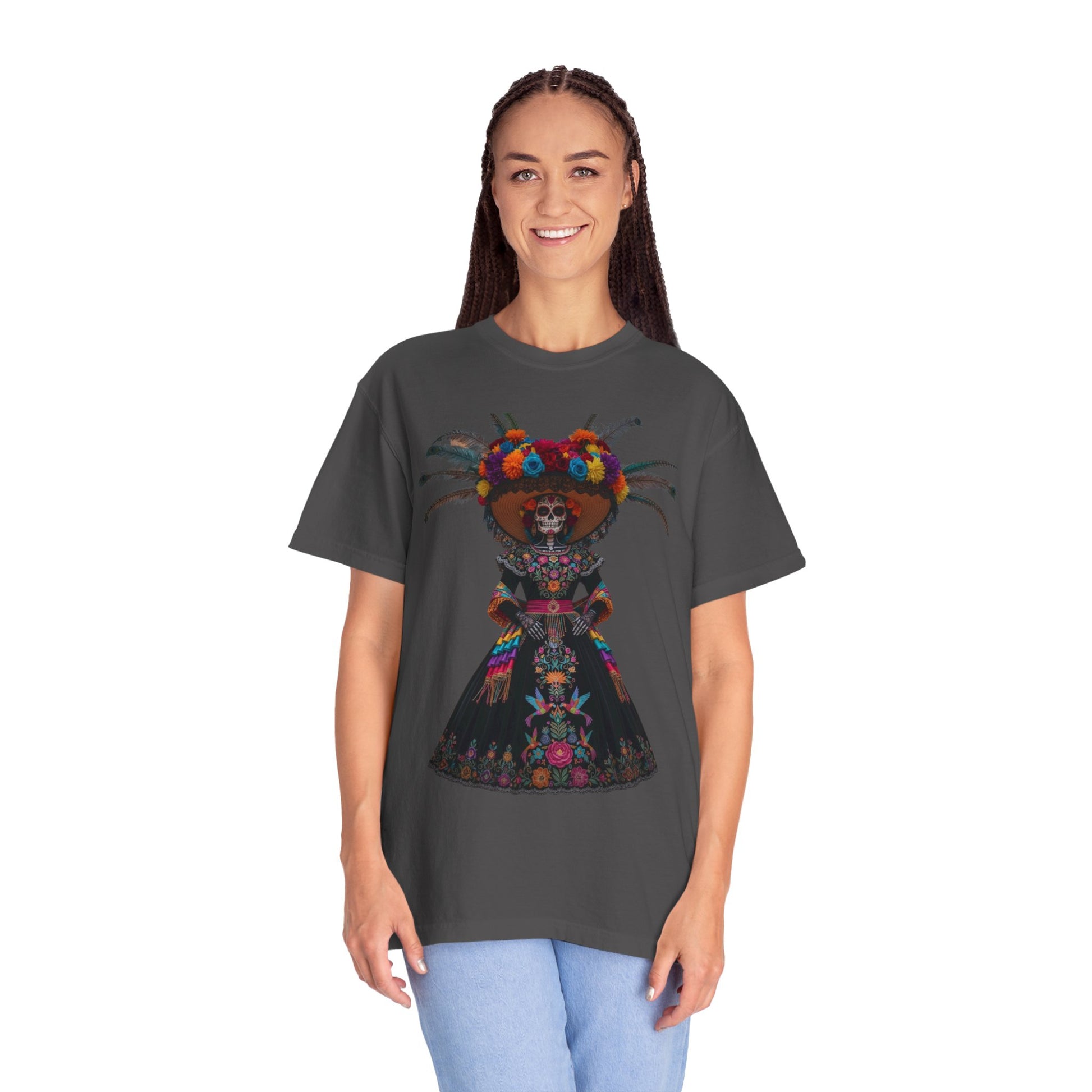 Colorful Dia de los Muertos T-Shirt, Unisex Garment-Dyed Tee, Casual Festival Wear, Halloween Decor, Cultural Celebration Top