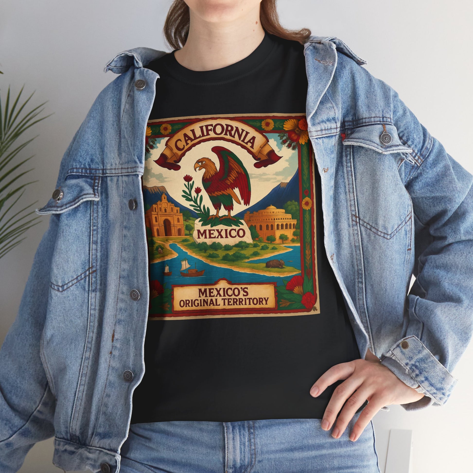 This powerful art piece captures The Mexican Eagle perched proudly on a rugged rock, symbolizing strength and heritage — a tribute to the heart of Mexico. The bold text reads “California, Mexico” and “Mexico’s Original Territory,” reminding everyone of the land’s deep historical roots before borders were redrawn.