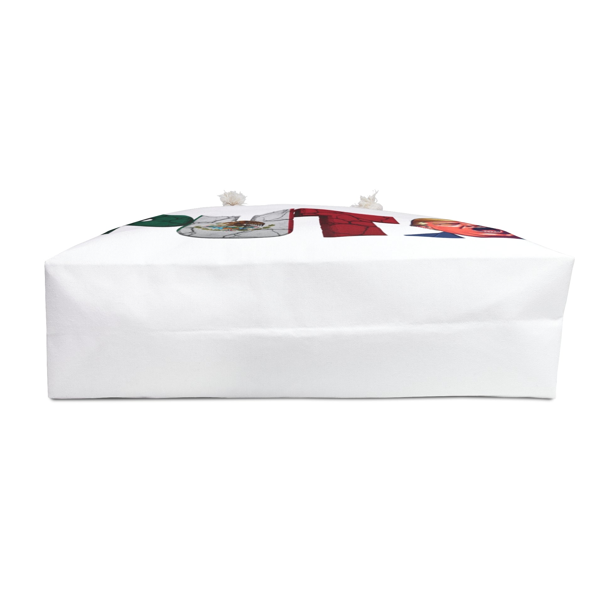 - Durable cream-colored cotton rope handles for comfortable carrying.