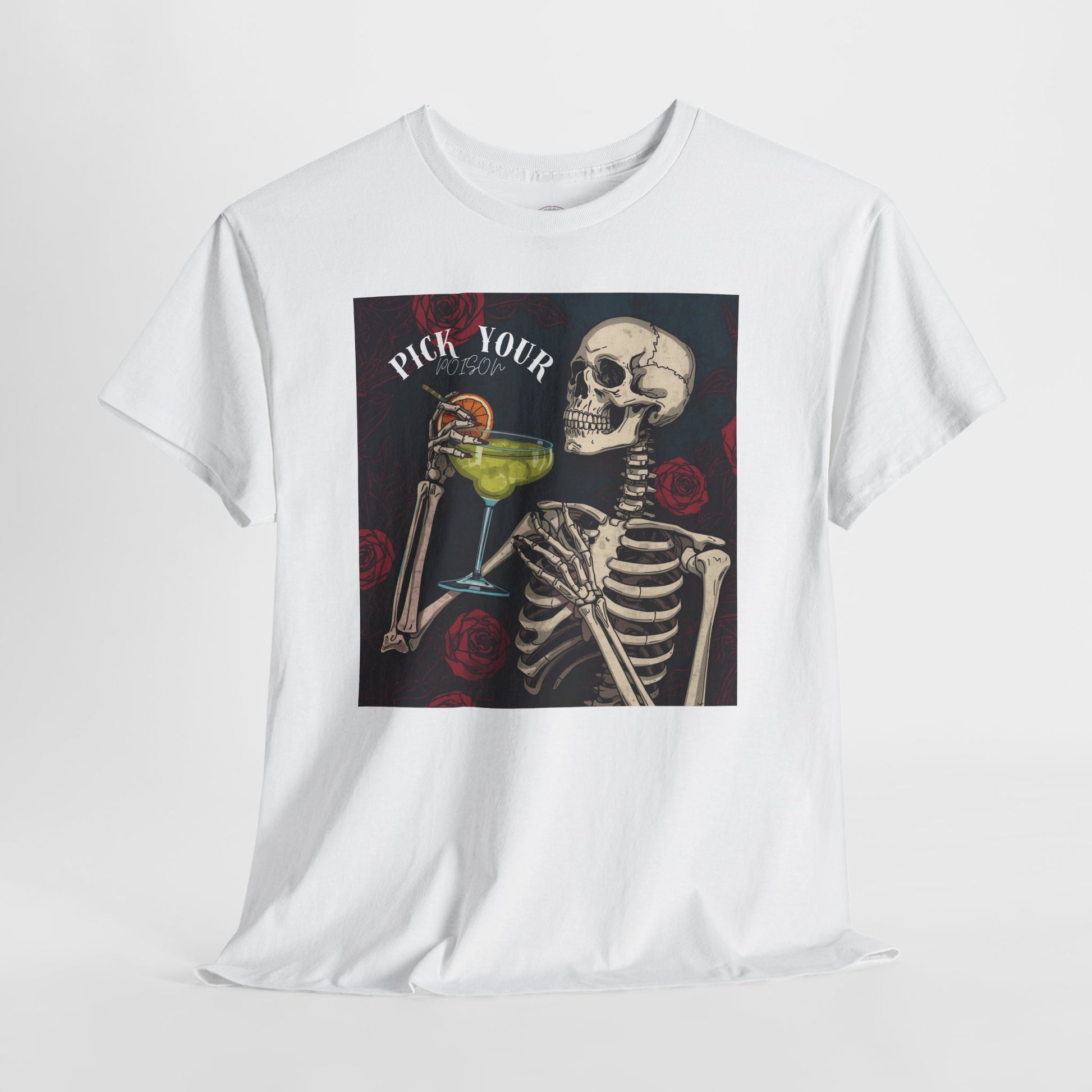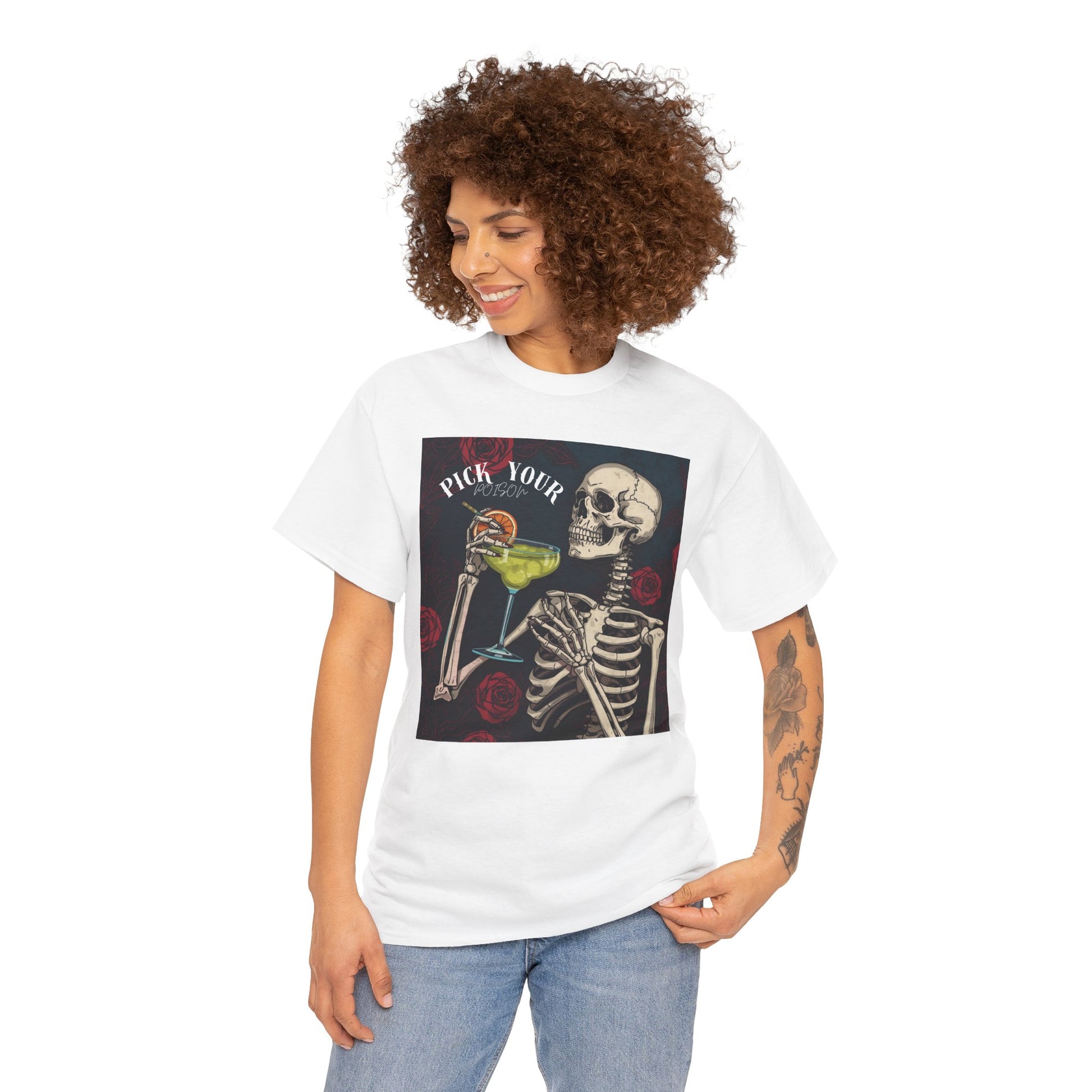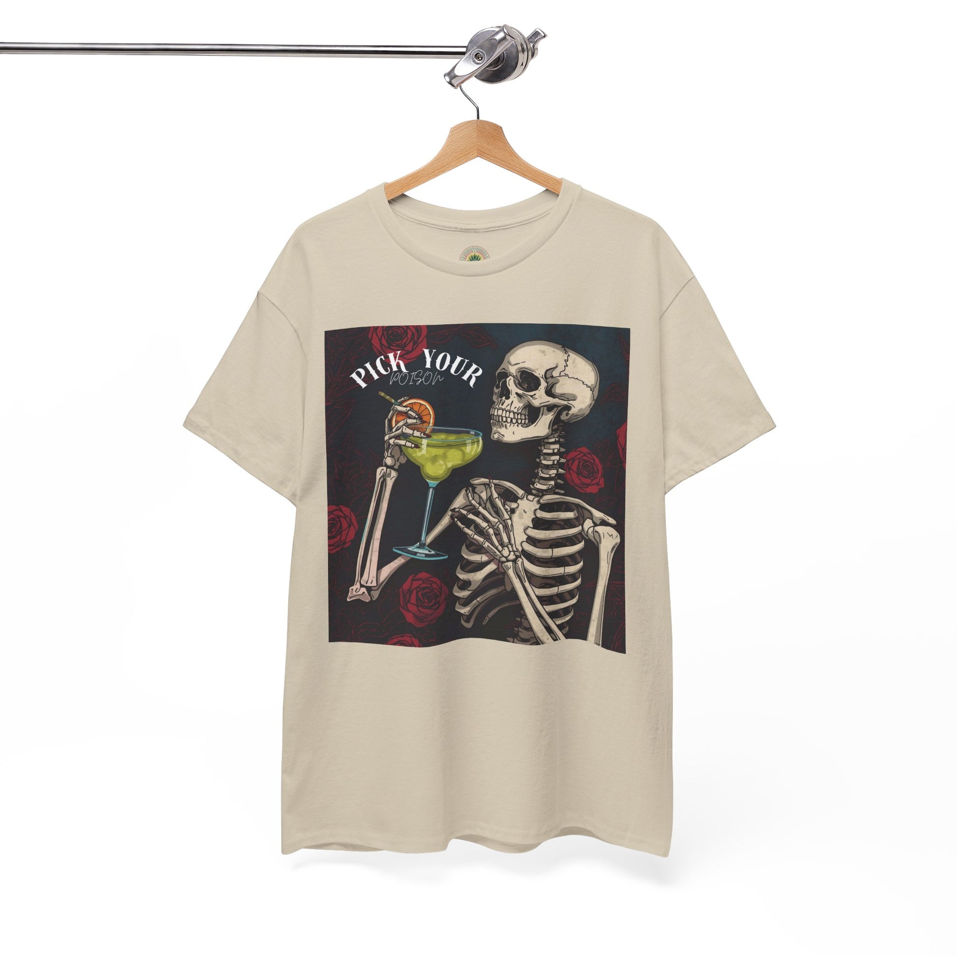 Spooky meets sassy in the “Pick Your Poison” Skeleton Tee 💀🍹. Featuring a bold graphic of a skeleton casually sipping a drink, this unisex graphic tee brings the perfect mix of Halloween vibes and everyday streetwear style.