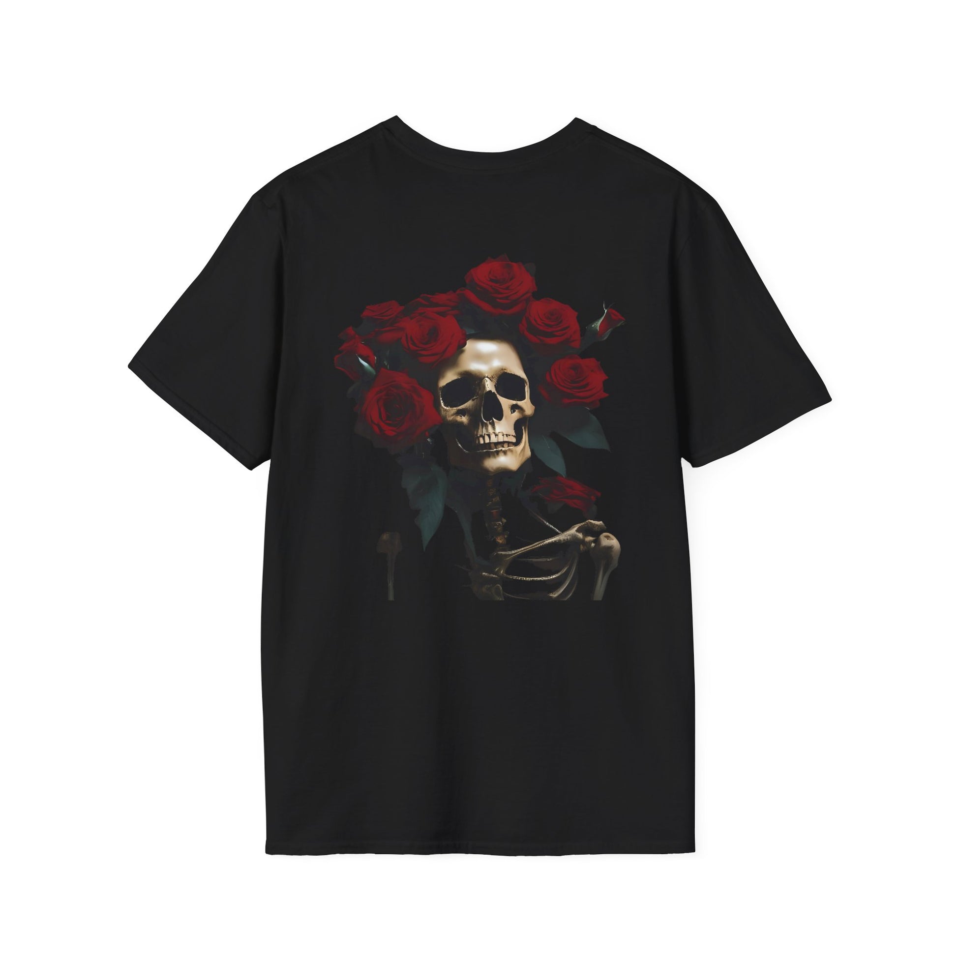Embrace your unique style with this unisex softstyle t-shirt. Made from 100% ring-spun cotton, it offers a lightweight and comfortable fit that's perfect for any season. The striking design features a skeleton adorned with vibrant red roses, adding a touch of edgy elegance. This shirt is ideal for casual outings, laid-back gatherings, or even as part of your festival attire. Whether celebrating Halloween or attending a Día de los Muertos event, this t-shirt allows you to express individuality effortlessly. It's perfect for those who appreciate bold art and want a standout piece in their wardrobe. Ideal for adults seeking comfort without sacrificing style.